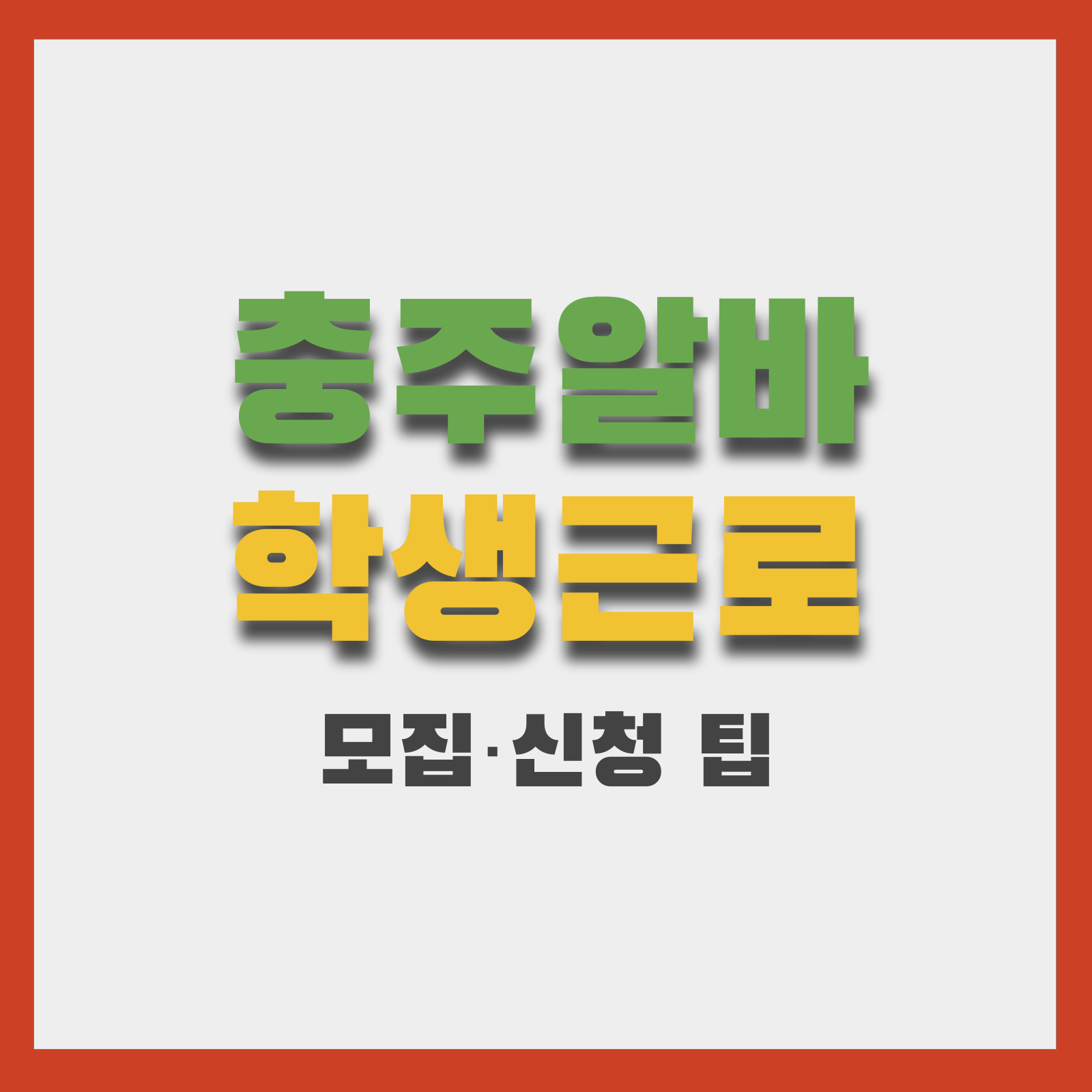 - 키워드 조합 — "충주 알바", "충주 카페 알바", "충주 학생근로 2026" 등으로 검색해 공고 필터링.